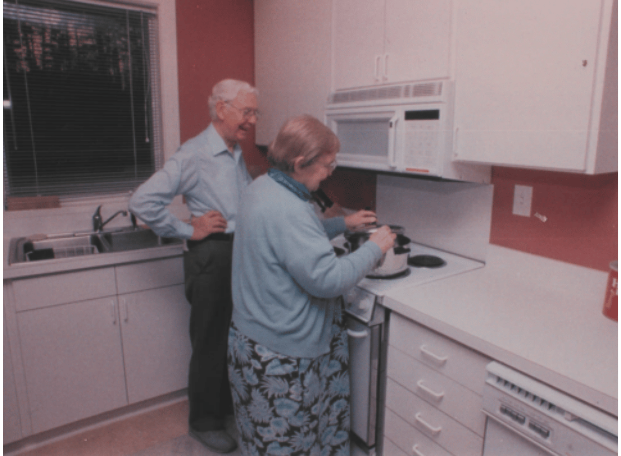 Caring House. Plans are developed for an 18-guest room facility, including a multipurpose room with TV, a shared dining room, kitchen, library, and manager’s apartment.